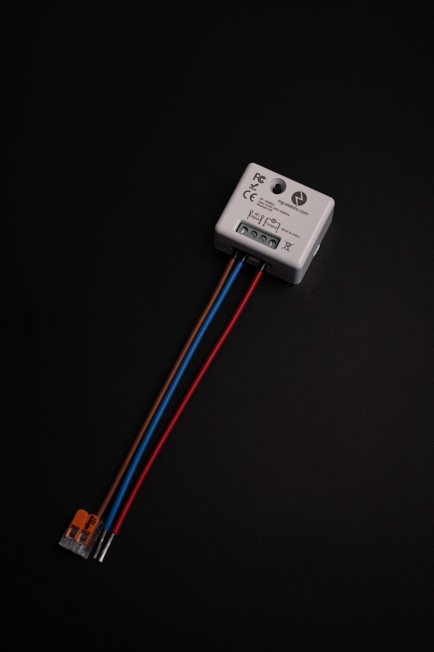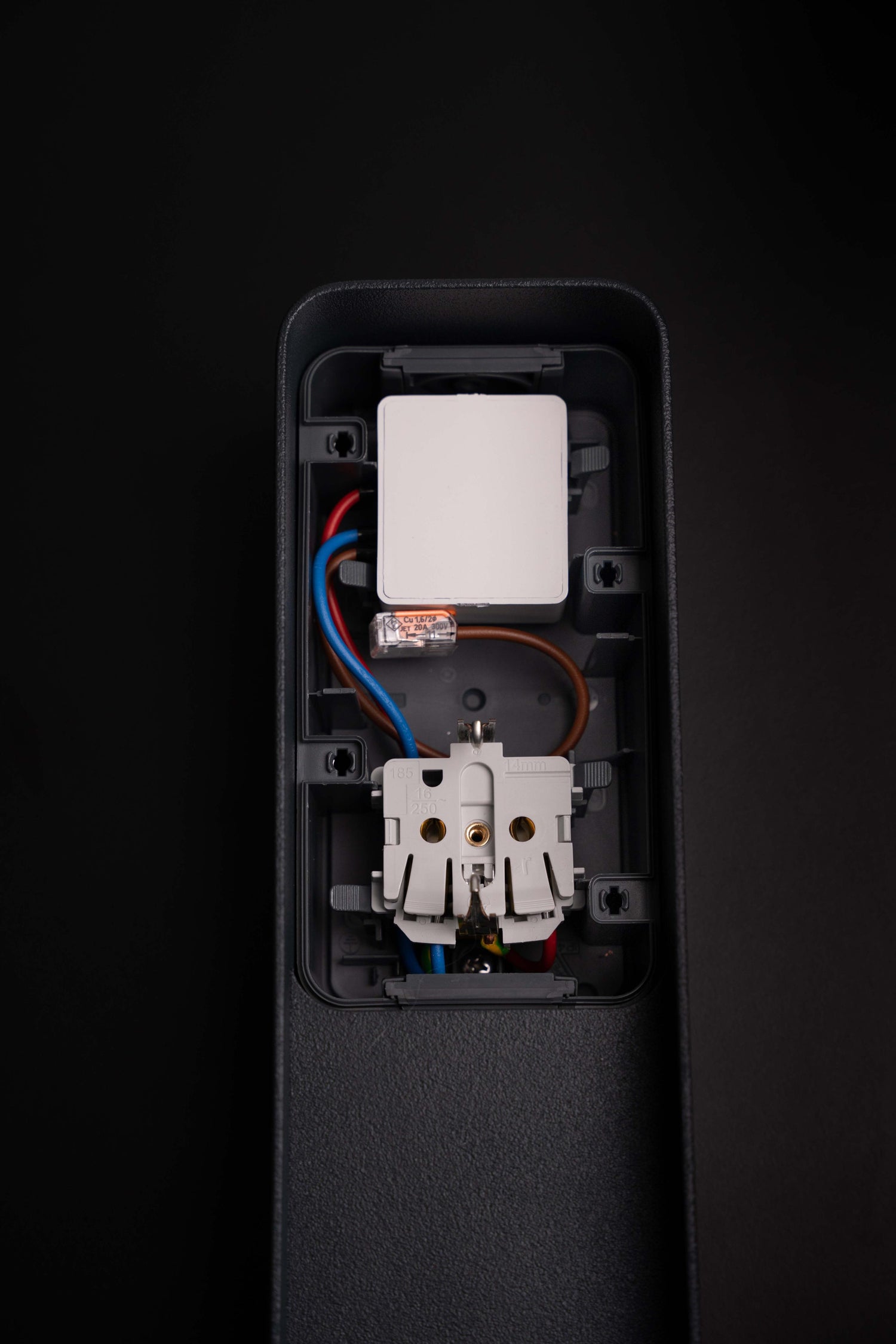 (Optional für Funkschalter Upgrade) Setzen Sie den Funkschalter wie bebildert verkehrt herum hinein. Die Verkabelung können Sie der beigelegten Anleitung oder dieser Grafik entnehmen.